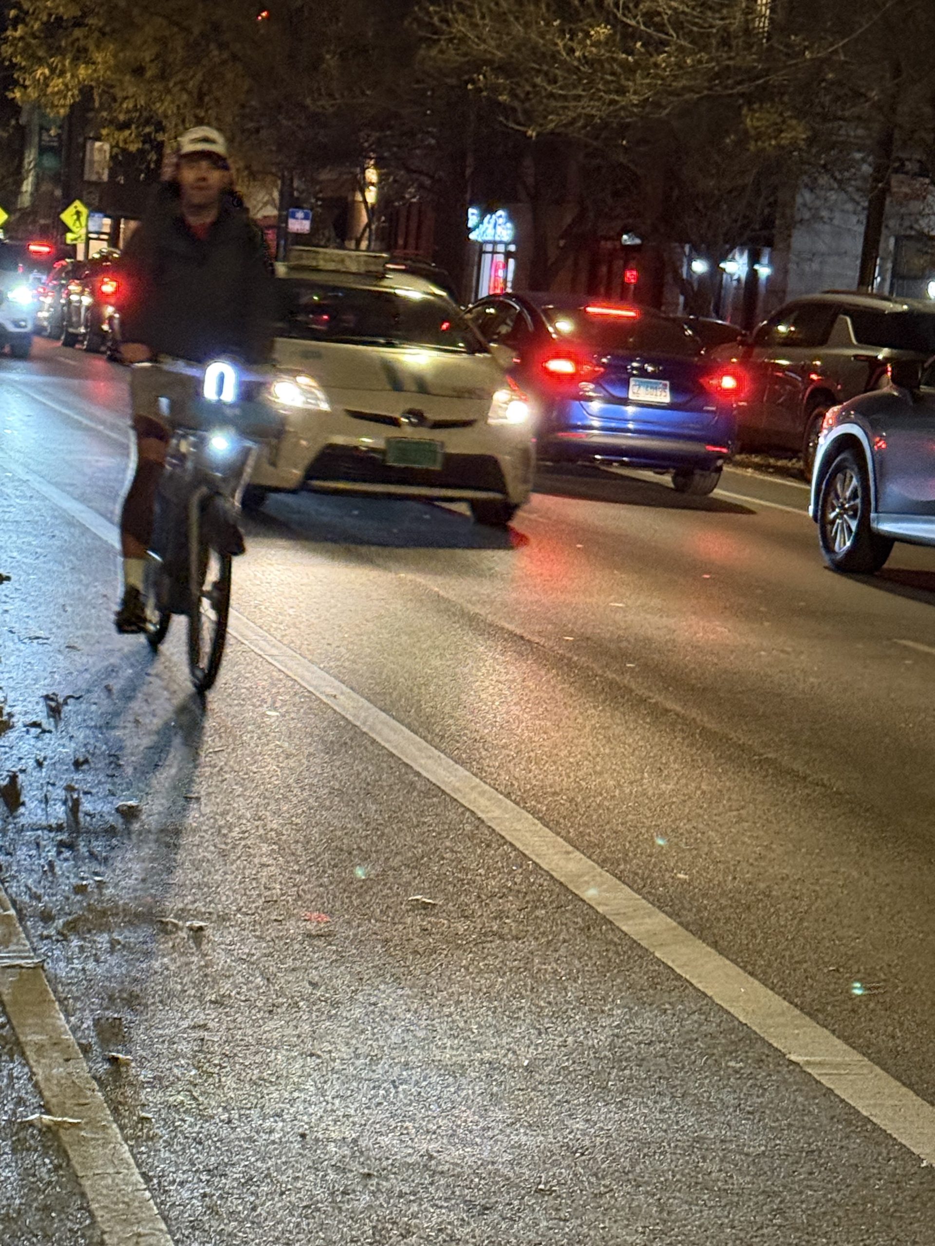 With sunset arriving as early as 4:30 p.m. in winter months, even short commutes occur in low-light or dark conditions. Bright headlights from oncoming traffic can momentarily blind motorists, making it difficult to see cyclists riding along the edge of the lane. This effect is especially severe on narrow Chicago streets or when rain, snow, or wet pavement reflects the glare.