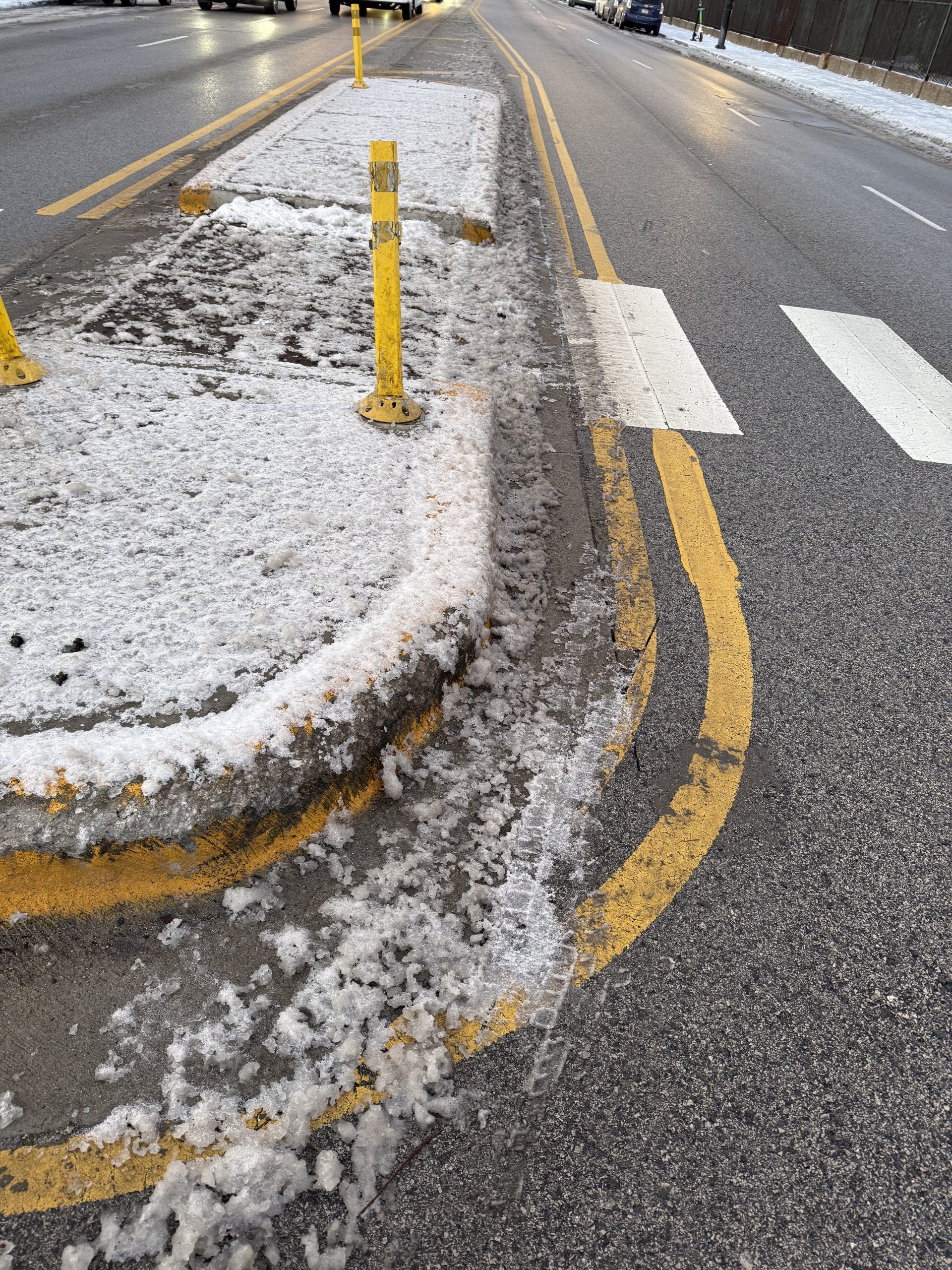 Chicago’s push for safer streets has a clear goal: reduce catastrophic pedestrian and cyclist injuries. But fixed concrete features can also raise safety questions for motorists, especially in a city with dark winter evenings, heavy rain, and snowstorms. I personally am driving slower and watching more carefully after hitting a pedestrian island.