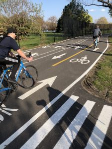 While biking along Chicago’s lake front bicycle path near Diversey Harbor, personal injury attorney, Peter Zneimer of Zneimer & Zneimer P.C. observed much confusion regarding which lanes were to be used by bikers and which lanes were to used by pedestrians. Some bikers were riding on the pedestrian path while some joggers and walkers were in the bike lanes. A number of near miss collisions ensued even during the short observation period. There were no markings on the pavement that would give some instruction to bikers, joggers and walkers as to which lane they were supposed to be in.